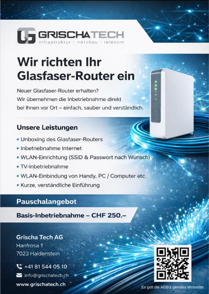 Das Pauschalangebot gilt für Einsätze innerhalb eines Radius von 25 km um den Standort der Grischa Tech AG.